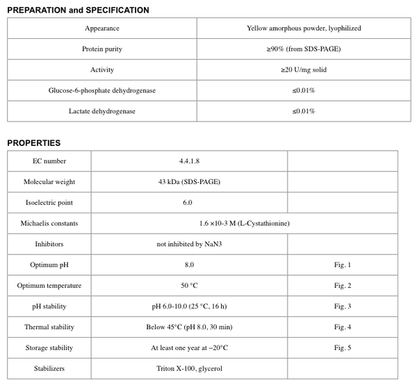 This enzyme is useful for enzymatic determination of L-homocysteine when coupled with CBS and LDH in clinical analysis.
